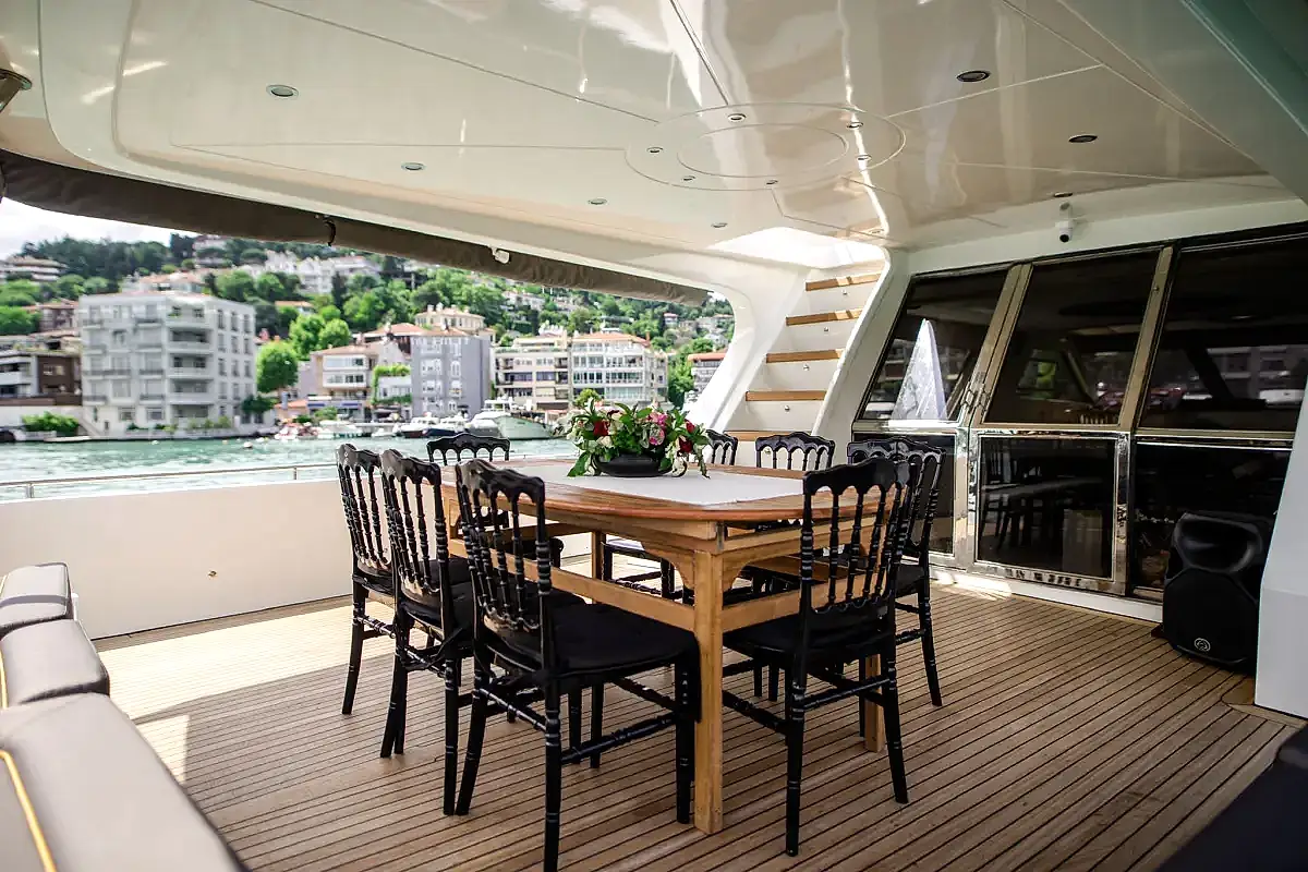 Bekarlığa veda için 4 saatlik bir rezervasyon oluşturmuştuk. Tekne çok konforlu, dans için de uygundu. Teknedeki ekip her konuda çok yardımcı oldular. Sadece süslemeyi daha özenli bekliyorduk. Özel günler için gönül rahatlığıyla rezervasyon yapabilirsiniz.